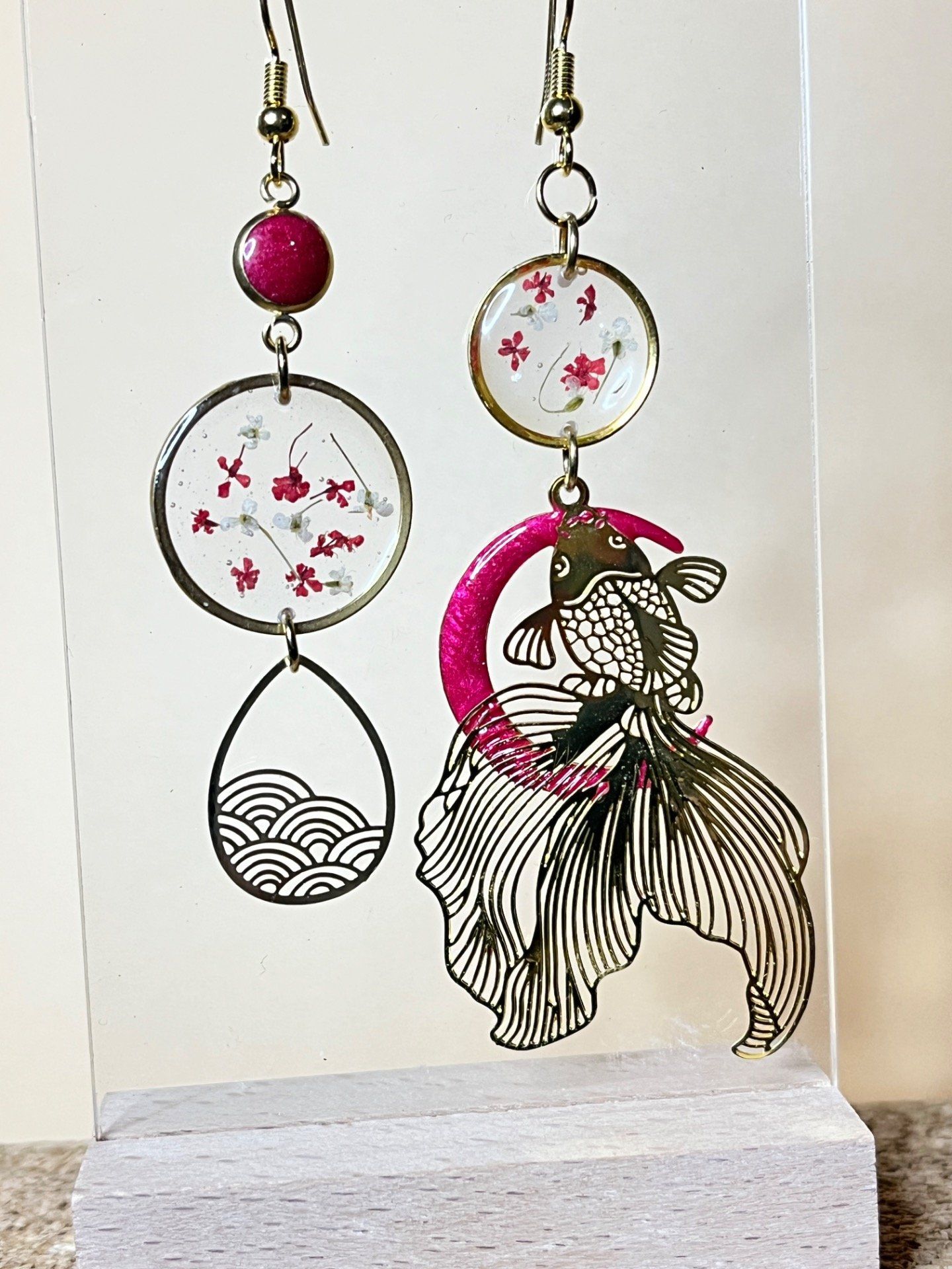 Un bijou unique qui mêle poésie et élégance.D’un côté, une carpe Koï sur une lune délicate, symbole de force et de chance.