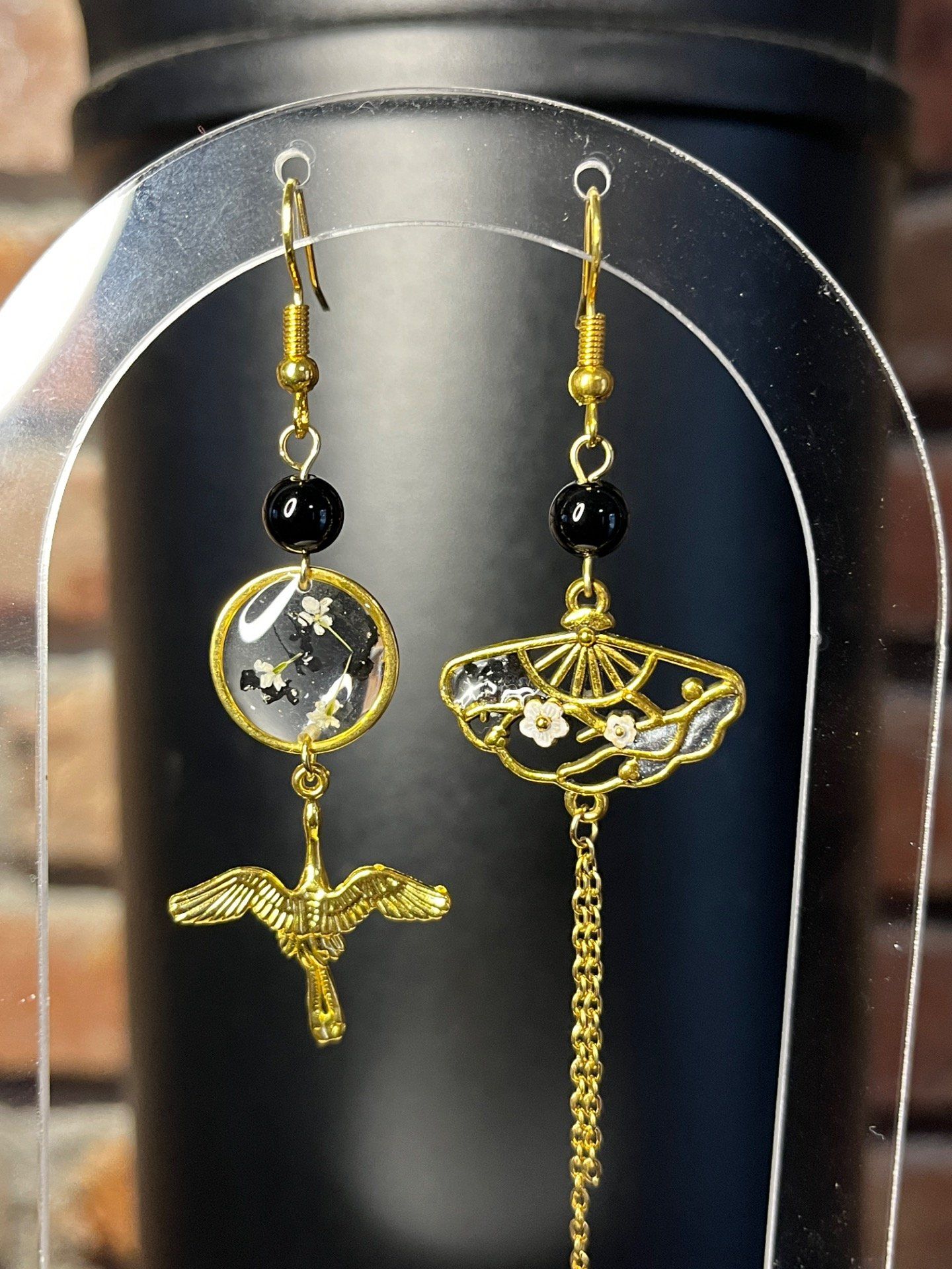 Ces boucles d’oreilles dépareillées puisent leur inspiration dans l’élégance et la délicatesse du Japon traditionnel.