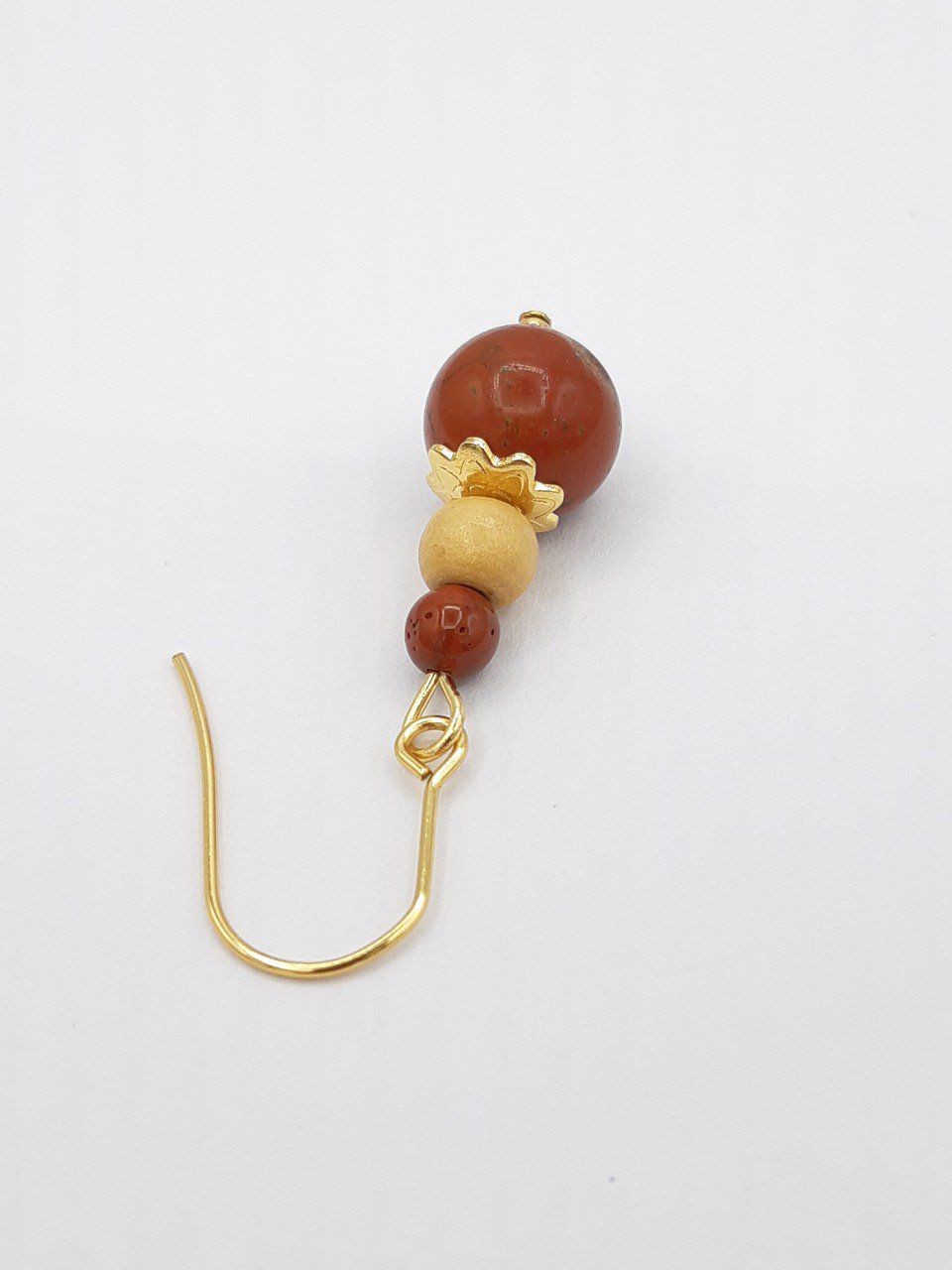 Boucles d'oreilles en jaspe rouge ,bois clair et acier doré