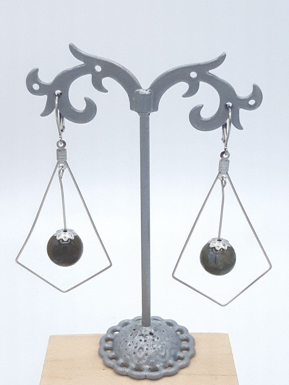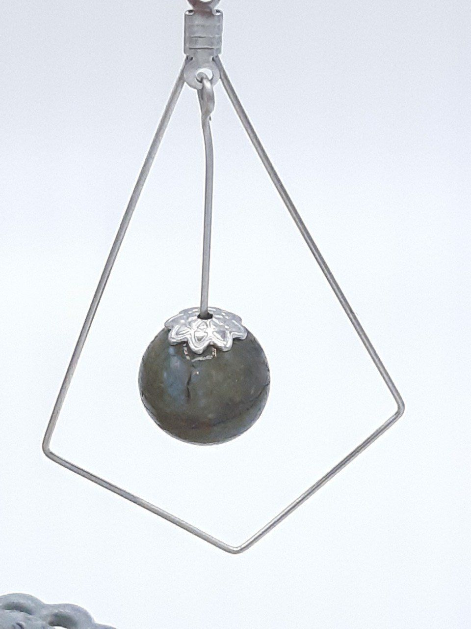 Boucles d'oreilles géométriques en acier inoxydable argenté et pierre de labradorite