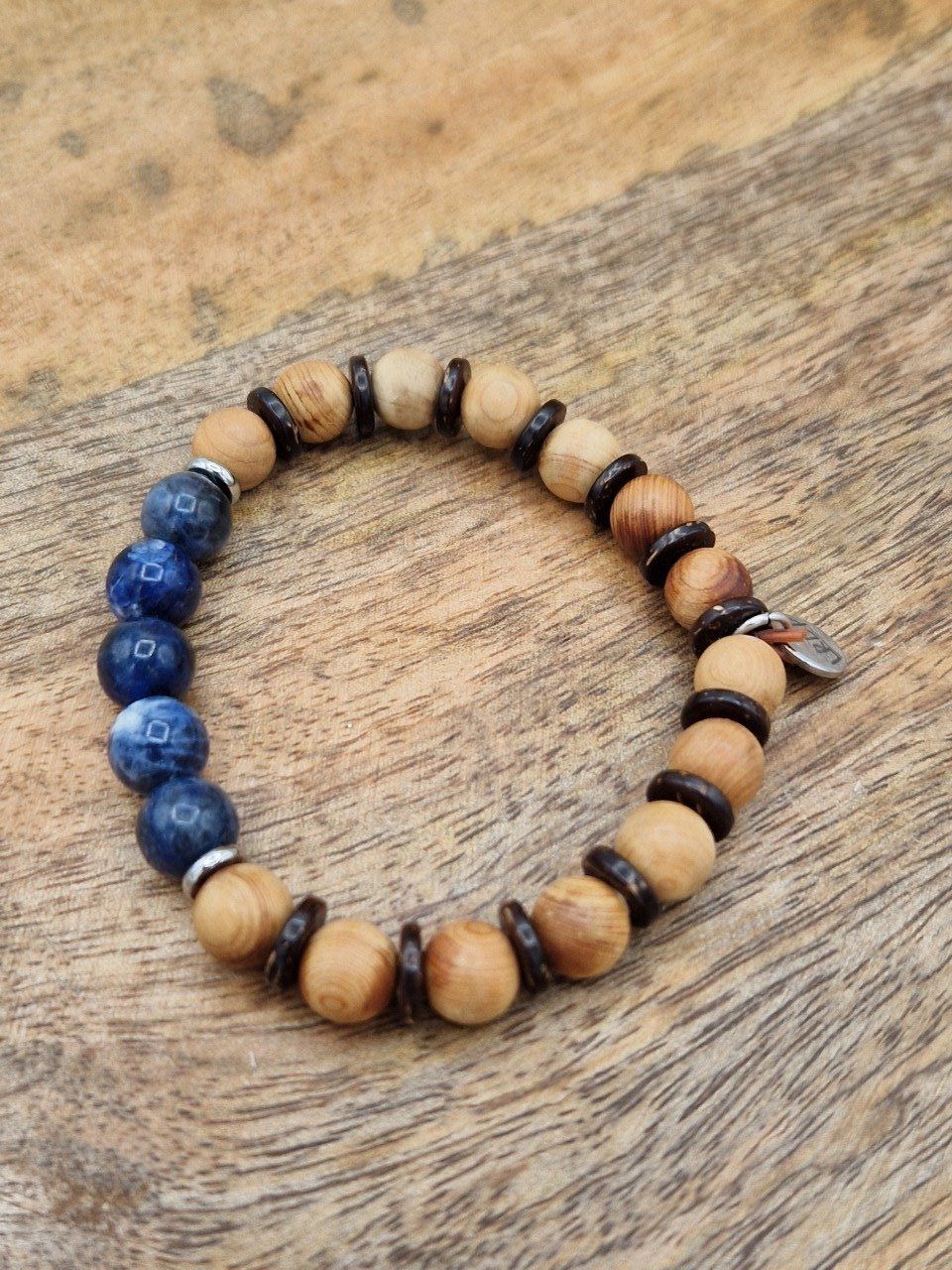 Bracelet personnalisable avec pierre au choix, noix de coco et bois de santal