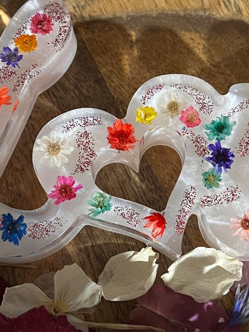 Love réalisé par mes soins avec des petites fleurs multicolores. Je peux le personnaliser avec les couleurs que vous souhaitez. Le delai de fabrication est de 8 jours. Demandez des informations via le formulaire de demande de devis ou par mail: [email protected]